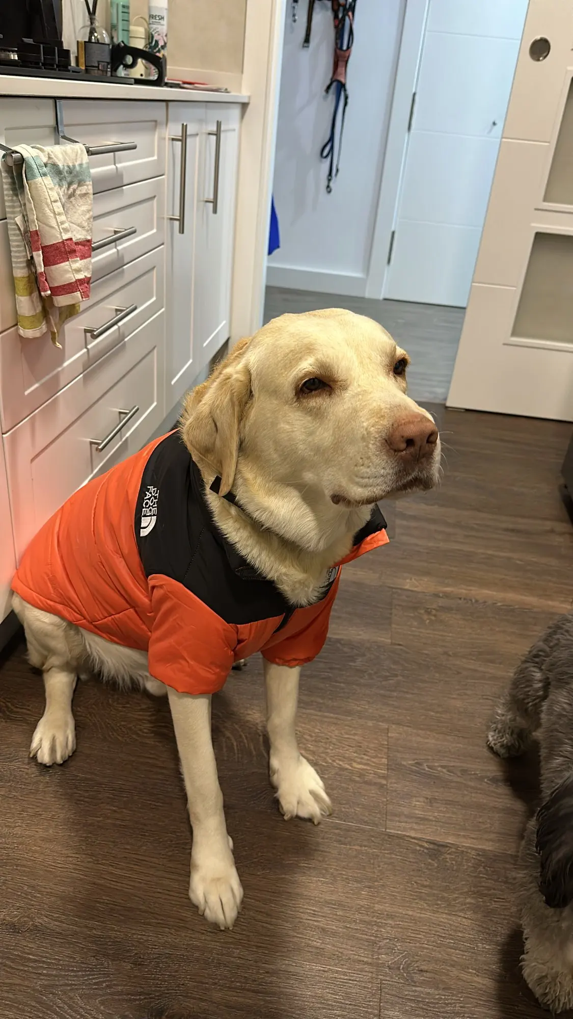 This jacket fits my dog perfectly, I got an Extra Large and he is 27 pounds, a bit long and I love it.